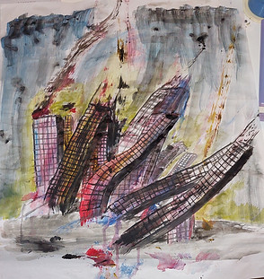 Lina, mijn pony, wordt al jaren met clickertraining en positieve bekrachtiging getraind door mij. Ze heeft het altijd al super leuk gevonden om dingen vast te pakken en te apporteren en is daar heel handig in. In 2022 heb ik Lina voor het eerst een kwast geïntroduceerd en zodoende heeft ze geleerd te schilderen. Ik heb dat wel eens gebruikt voor een kunstproject op school. Ik liet Lina wat schilderen en ging daarna zelf daarop door. Dat gaf leuke resultaten. Hiernaast zie je éen schilderij van het uiteindelijke drieluik dat het was geworden.